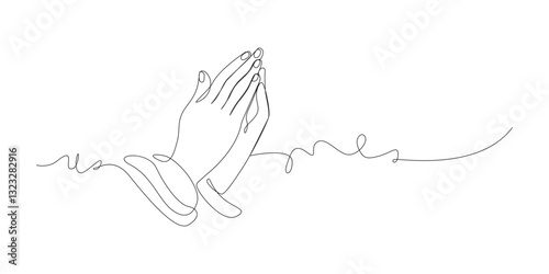 © Sneha, Naklejka premium Continuous Praying hand one line art style vector illustration.