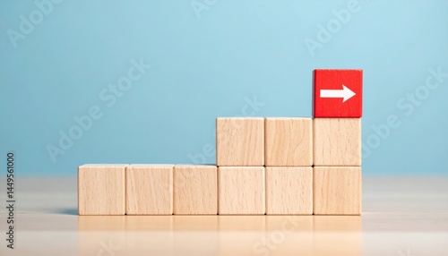 © crazyass, Obraz premium Continuous process development assembling blocks with forward movement office visual concept clear background