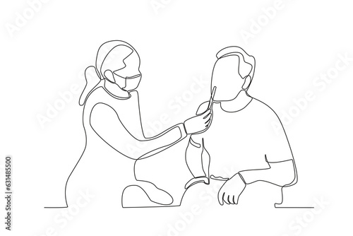 Fototapeta premium Continuous single line drawing of a doctor performing a rapid test for Covid-19 on a patient