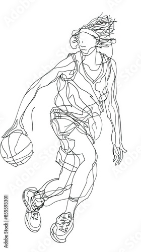 Fototapeta premium Continuous single one line drawing of basketball woman player