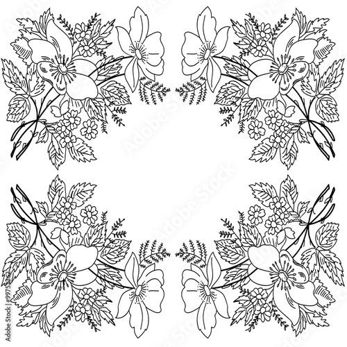 Fototapeta premium contour drawing flowers frame monochrome