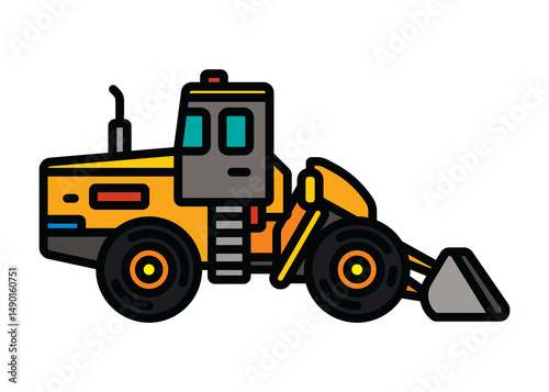 Fototapeta premium Contour icon of a bulldozer on wheels. A design element.