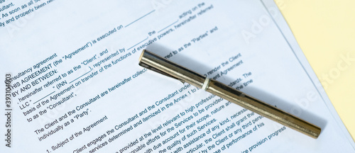 © Natallia, Fototapeta premium contract and pen on yellow background
