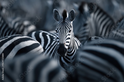 © Ольга Лукьяненко, Fototapeta premium Contrast Concept Showing One Zebra Distinct from the Herd