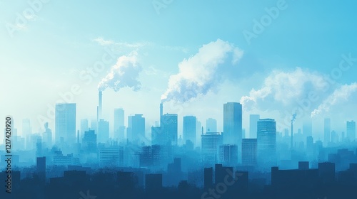 © Chantip, Naklejka premium Contrast of clear blue sky meeting a thick smog layer above a city, dramatic environmental and air pollution message.
