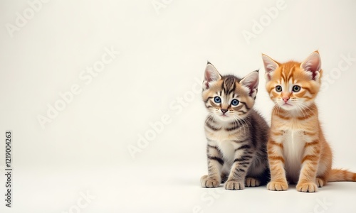 Fototapeta premium Contrasting Tabby and Ginger Kittens Posing Together Against White Background