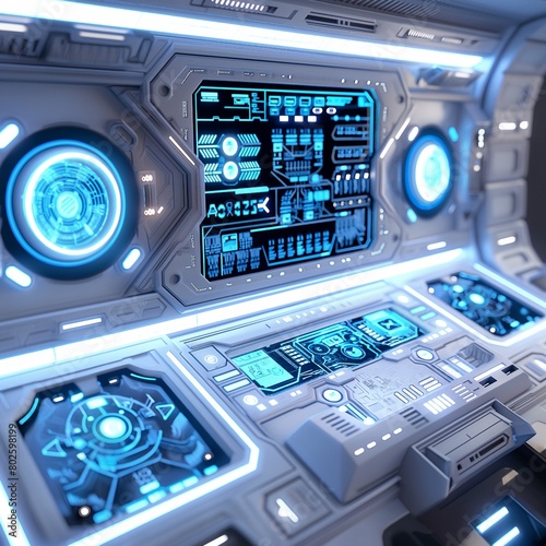 Obraz premium Control panel for spacecraft, white, blue, futuristic