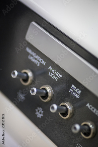 Fototapeta premium Control panel with switches in a luxury speed boat