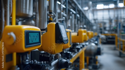 © Justlight, Fototapeta premium Control system monitors industrial production process, with digital display showing sine wave, ensuring efficient operation and quality control in modern manufacturing environment