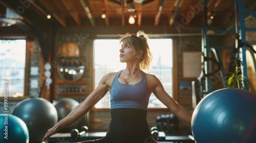 Fototapeta premium Controlled Movement: Movement performed with precision and control, such as in pilates or rehabilitation exercises, to improve coordination, posture, and strength.