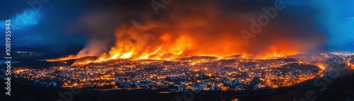 Fototapeta premium Controlled Wildfire Crisis: Managing Flames Amidst Urban Landscapes for Safety and Sustainability
