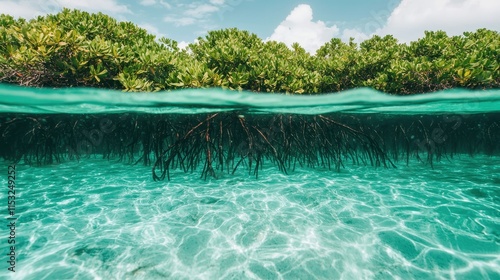 Fototapeta premium Controlling Flood Ecosystems Mangrove Roots Stabilizing Soil in Coastal Waters