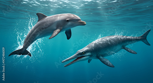 Obraz premium Convergent Evolution in Dolphin and Ichthyosaur