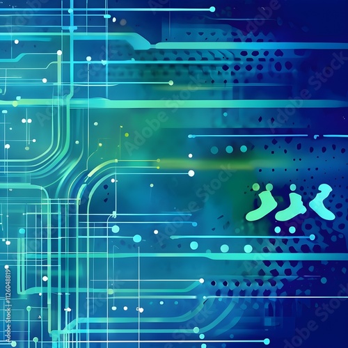 © Stefan Schurr, Naklejka premium Converging digital lines and sport gear silhouettes creating an abstract pattern to show AI impact in sports training