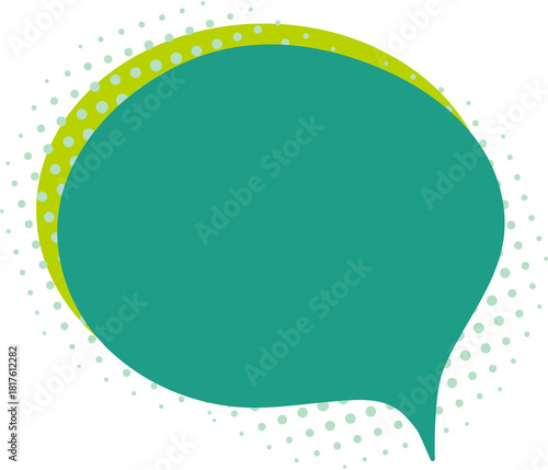 Fototapeta premium Conversation comic balloon hand drawn icon, pop art decoration with halftone shadow, cute green raster sticker frame