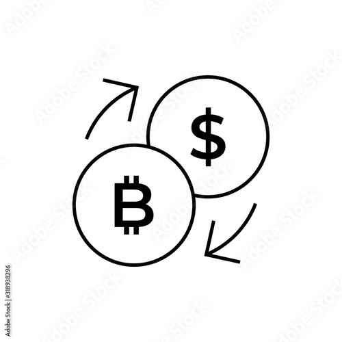 Obraz premium Conversion, currency exchange - with symbols of dollar and bitcoin - line icon