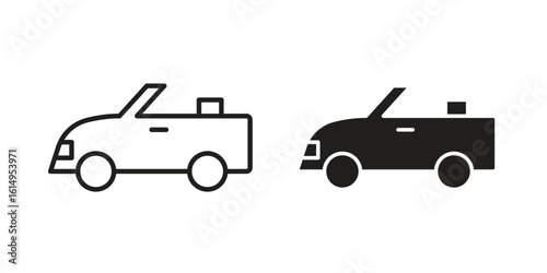 Fototapeta premium Convertible car icon set, line and black glyph style for food app website.