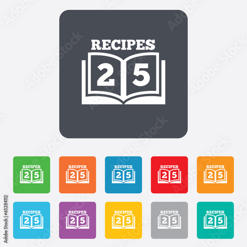 © blankstock, Naklejka premium Cookbook sign icon. 25 Recipes book symbol.