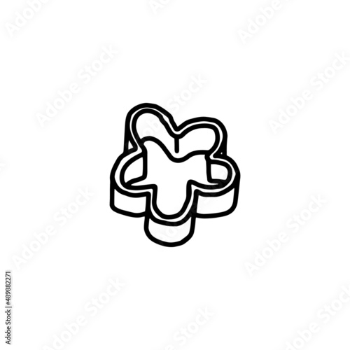 © sabelskaya, Fototapeta premium Cookie mold in flower shape black line doodle vector illustration isolated.