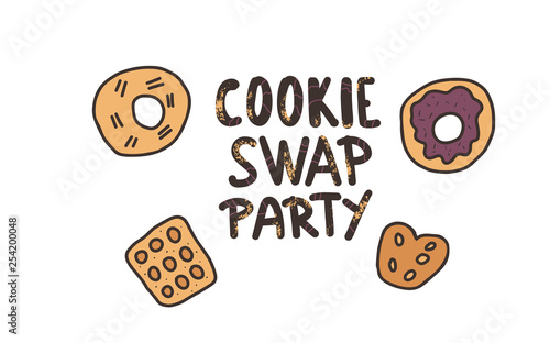 © Syuzann q, Obraz premium Cookie Swap lettering. Vector concept design.