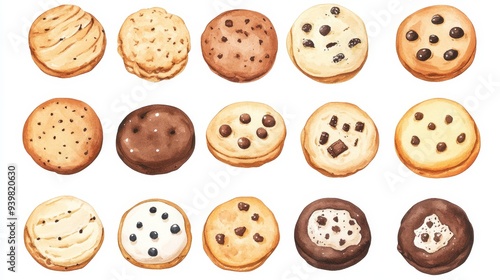 Fototapeta premium Cookies set. White background. Watercolor illustrations