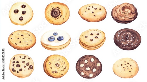 Fototapeta premium Cookies set. White background. Watercolor illustrations
