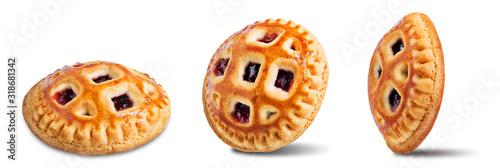 © nata_vkusidey, Obraz premium Cookies with strawberry filling on a white isolated background