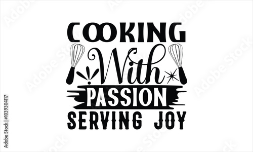 Naklejka premium Cooking With Passion Serving Joy-chef T-shirt Design,Cooking typography t...