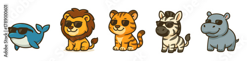 Naklejka premium Cool animal cartoon icons, sunglasses characters