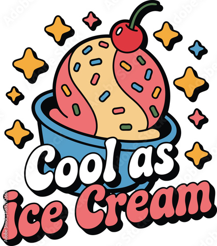 © JUBAYER, Naklejka premium Cool as Ice Cream Cartoon