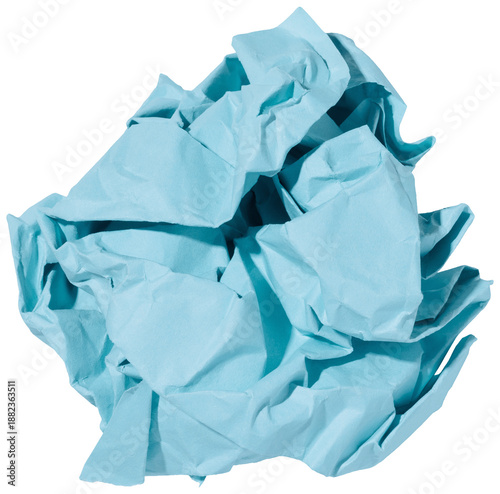 © Lyalya Go, Obraz premium Cool blue paper ball from crumpled used sheet, isolated paper element for digital design