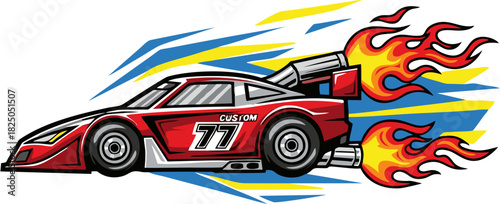 © Darmanto, Obraz premium Cool Cartoon Race Car Speeding with Flames Vector Illustration