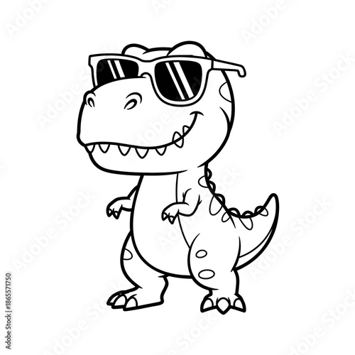Fototapeta premium Cool Cartoon T-Rex Dinosaur Wearing Shades - Black and White Line Art