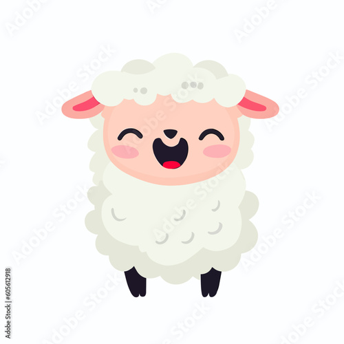 Fototapeta premium Cool cute little happy sheep smiling - vector graphic art