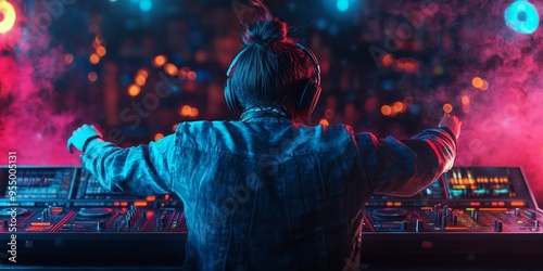Fototapeta premium Cool DJ French Bulldog: Stylish Pet Party Concept for Nightclubs and Music Events. Creative AI-Generated Illustration for Pet Website Banners, Postcards, NFT Art, and Marketing Campaigns. Trendy 4K Wa