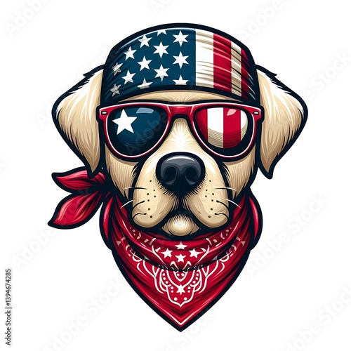 © Oprek, Fototapeta premium Cool Dog with American Flag Bandana and Sunglasses Illustration
