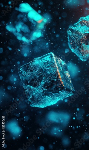 Obraz premium Cool ice cubes in motion. AI.