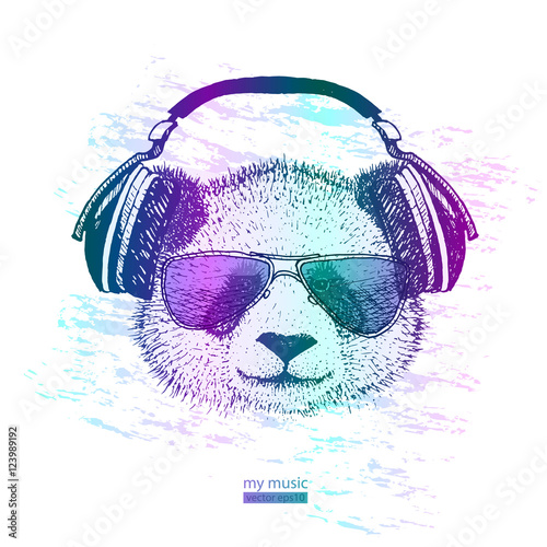 © ulamarin, Obraz premium cool Panda with headphones and glasses