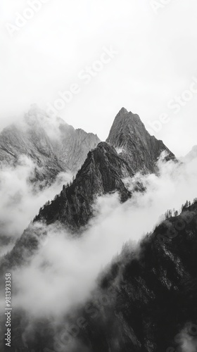 Obraz premium cool phone desktop nature background, mountain top birds eye view, black and white, 6:19