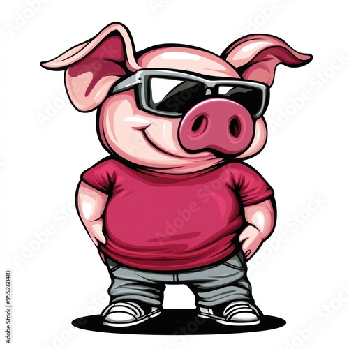 © agus, Naklejka premium Cool Pig in Sunglasses Cartoon Illustration