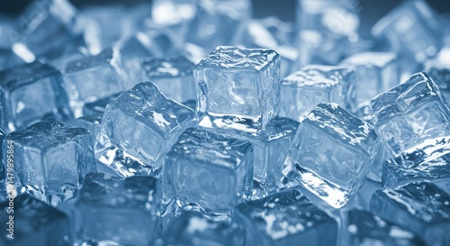 Obraz premium Cool refreshing ice cubes glistening with water droplets in close-up view