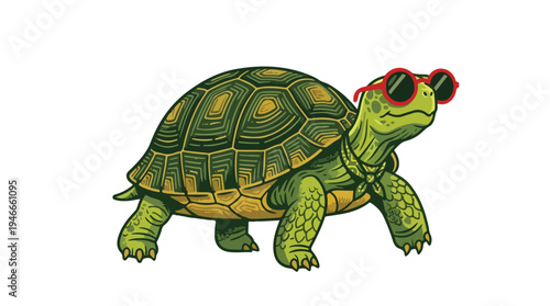 © alisya, Fototapeta premium Cool Turtle Wearing Sunglasses and a Necklace.