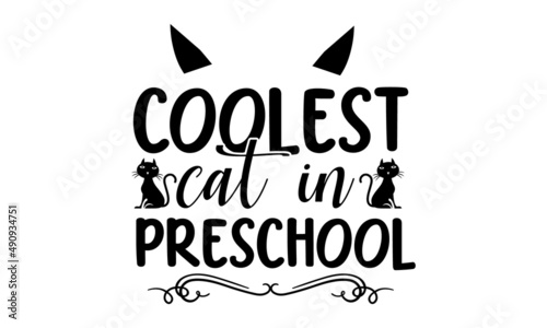 Fototapeta premium coolest-cat-in-preschool, Modern brush lettering, Cute slogan about cat,...