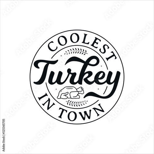 © Ma Graphive, Obraz premium Coolest Turkey In Town vector illustration , hand drawn lettering with thanksgiving quotes, thanksgiving designs for t-shirt, poster, print, mug, and for card