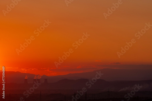 © vigenmnoyan, Fototapeta premium Cooling towers of nuclear power plant with stormy clouds in the background