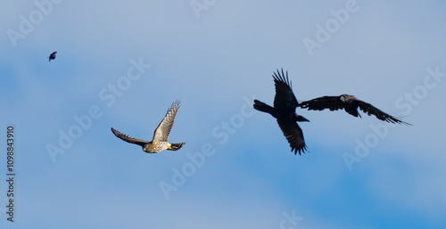 Fototapeta premium Cooper's Hawk Harassed By Crows in Flight