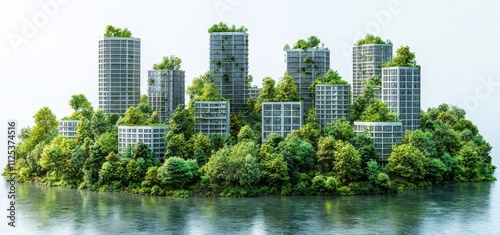Obraz premium Cooperative city planning that integrates green spaces and sustainable design, with a solid color backdrop.