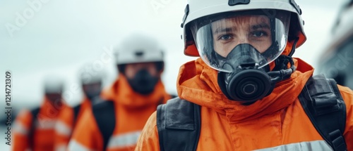 Naklejka premium Coordinated emergency response efforts in urban areas, with rescue teams,...