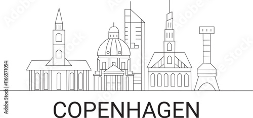 © Felicia, Fototapeta premium Copenhagen City Line Draw Simple Minimalist