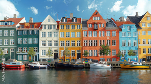 © Novanture, Naklejka premium Copenhagen, Denmark city skyline created with Generative AI technology